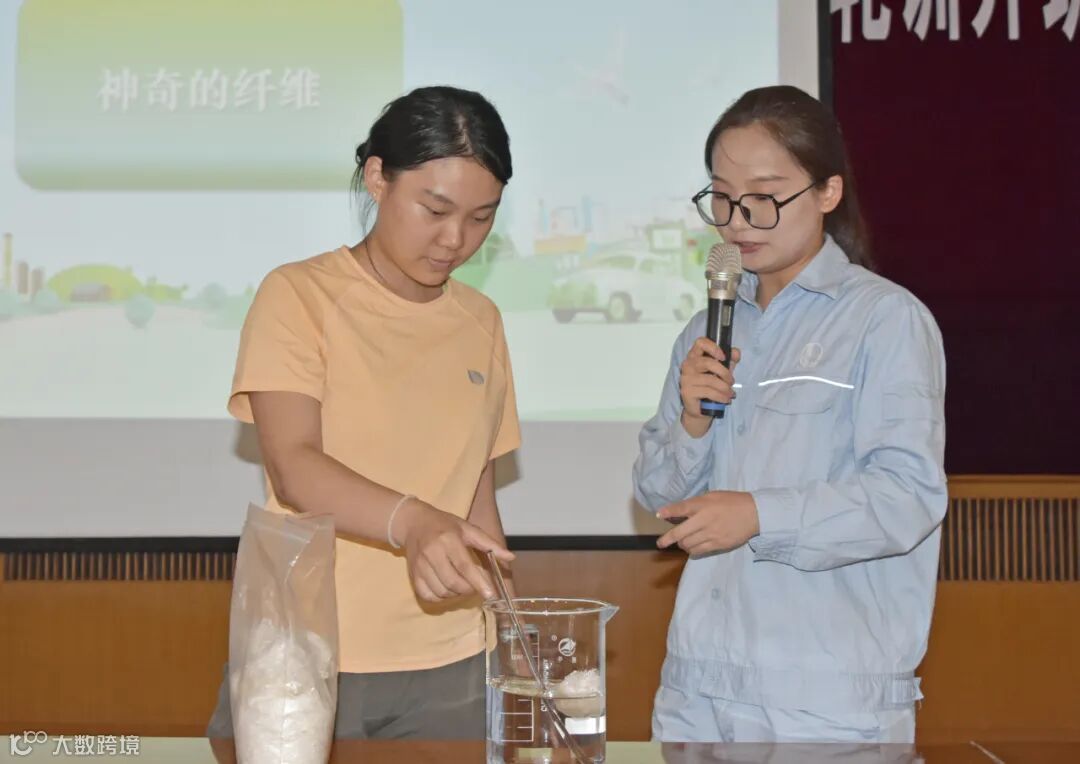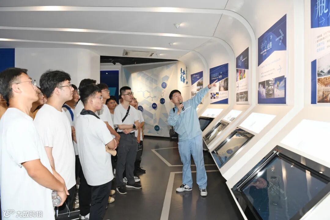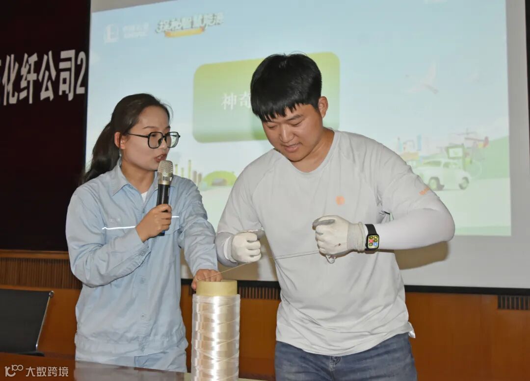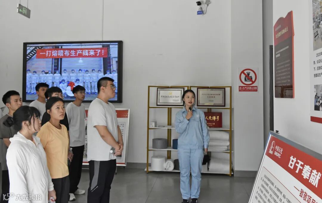 讲解员向大家介绍了不同纤维的特性、工艺和应用领域,并带领大家参观了短纤六装置后纺生产线,介绍了生产和工艺流程,见证了“石油变棉花”的奇迹。