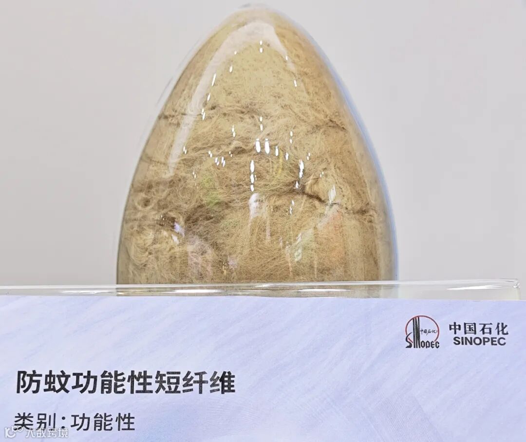 (▲图为工作人员在讲解防蚊短纤制成的衣服)