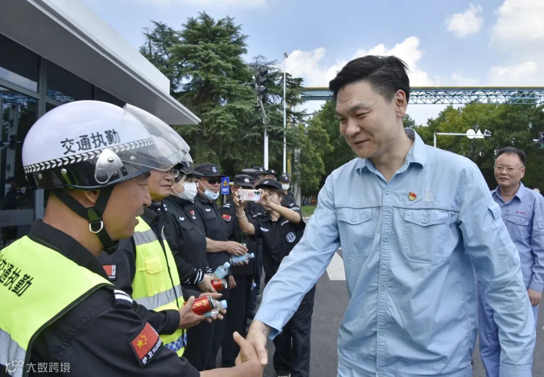 公司党委副书记、纪委书记、工会主席刘楠带领第五慰问组,首先来到江苏华舜公司南区环卫所开展慰问。在环卫所门口,刘楠给大家送上防暑降温饮料表示慰问,叮嘱他们要落实好防暑措施,时刻关注自身健康状况。在公司厂区门卫处,刘楠一行把清凉饮品送到工作人员手上,感谢他们为公司生产提供安全保障所付出的努力,同时叮嘱相关负责人要切实落实好防暑降温相关措施,保障职工的人身安全和生产安全。