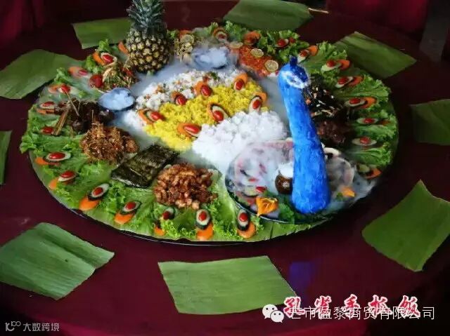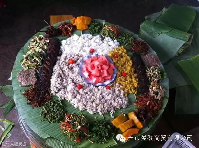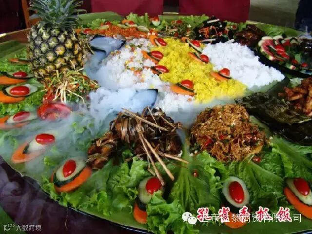 手抓饭不仅是景颇族餐饮文化的代表作,也是人们“回归自然、绿色环保”餐饮理念的代表之作。手抓饭最早演变自景颇族的绿叶宴,是景颇族为了庆祝丰收的喜庆宴,大家围坐一起,以绿叶当碗,竹筒做杯,以手做筷,饭菜用手抓着吃,除了有“团圆、和谐、欢乐”等美好的寓意之外,吃手抓饭的过程别有一番味道。