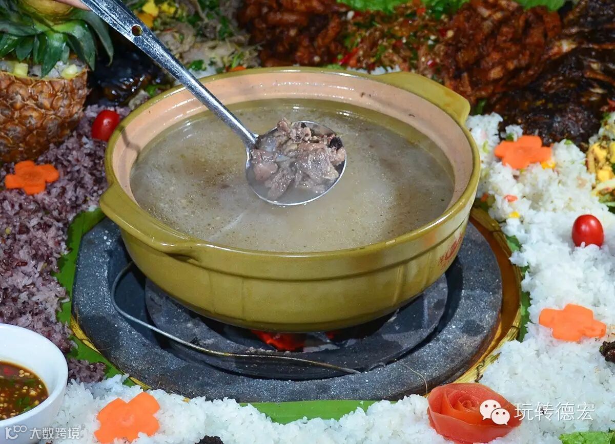 “火笼手抓饭”的一大特色:营养浓汤。由鸡汤、排骨等加入美味食材精心熬制而成,暖心暖胃。