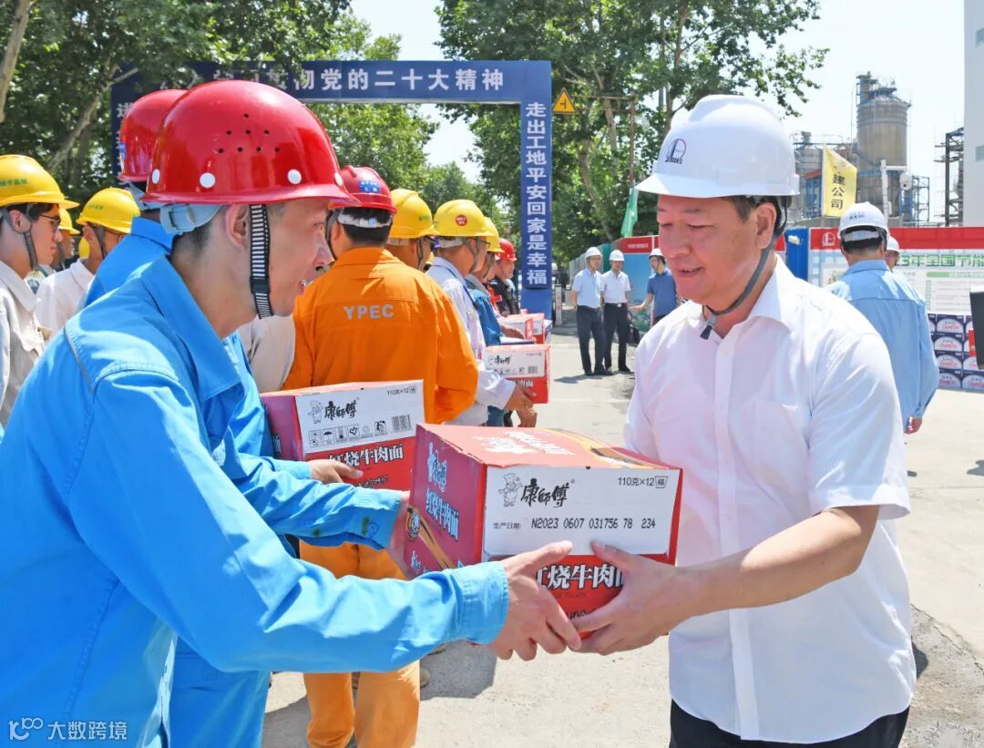 在年产300万吨PTA项目建设现场,蒋元峰代表扬州市总工会向高温天气下坚持奋战在项目现场的仪化和参建单位的干部职工表示慰问,并给大家送上慰问品和《如何防治职业病》《工会劳动保护工作手册》等安全和法律方面的书籍,希望大家在战高温、促高产,保质保量按期完成项目建设任务的同时,注意安全、保重身体、愉快工作!