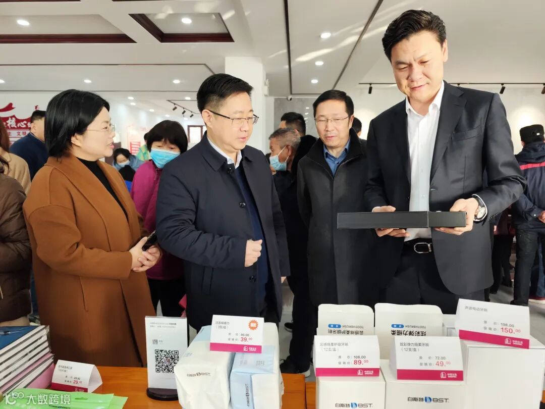 启动仪式开始前,杨昕与刘楠来到仪征化纤终端产品展销区域观看了仪化产品,并一同参观了好人馆,对仪征先进典型给予高度称赞,对仪化产品给予大大点赞。
