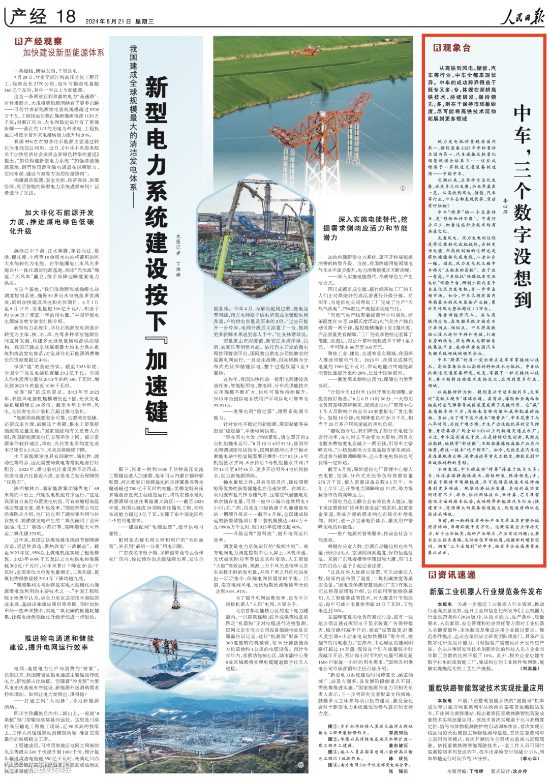 近年来,中国中车在不断锻造高铁核心技术基础上,迁移应用至风电、储能、汽车等不同行业,取得了优异的经营发展成绩,是中央企业以科技创新驱动产业创新、布局发力战略性新兴产业的缩影。8月21日,《人民日报》刊发《中车,三个数字没想到》,详解中国中车的“跨界”实践。小新为您全文分享——