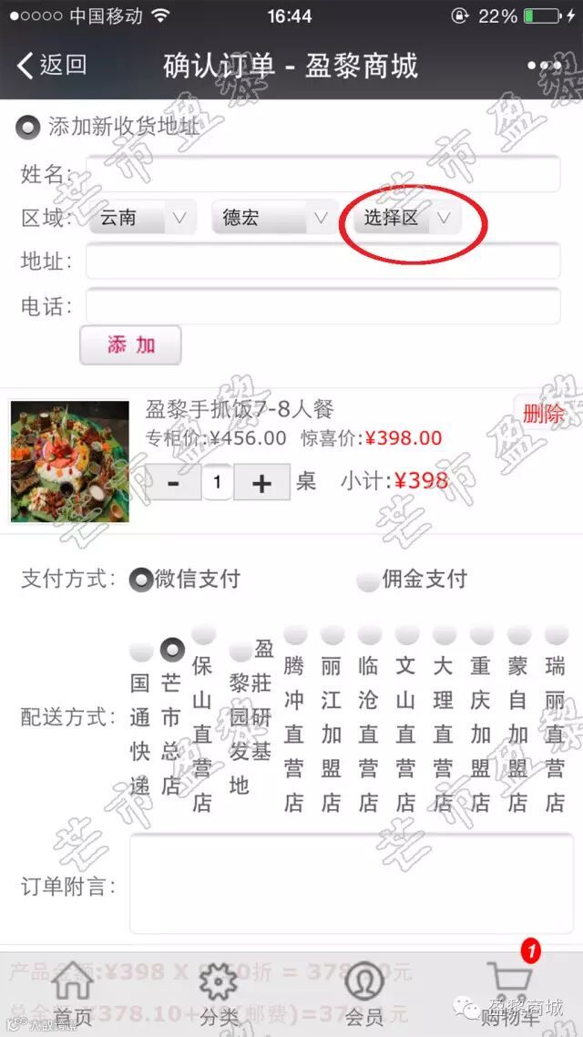 在选择区域时要注意一点,当你把省、市选了之后还会多出一项(选择区)如下图