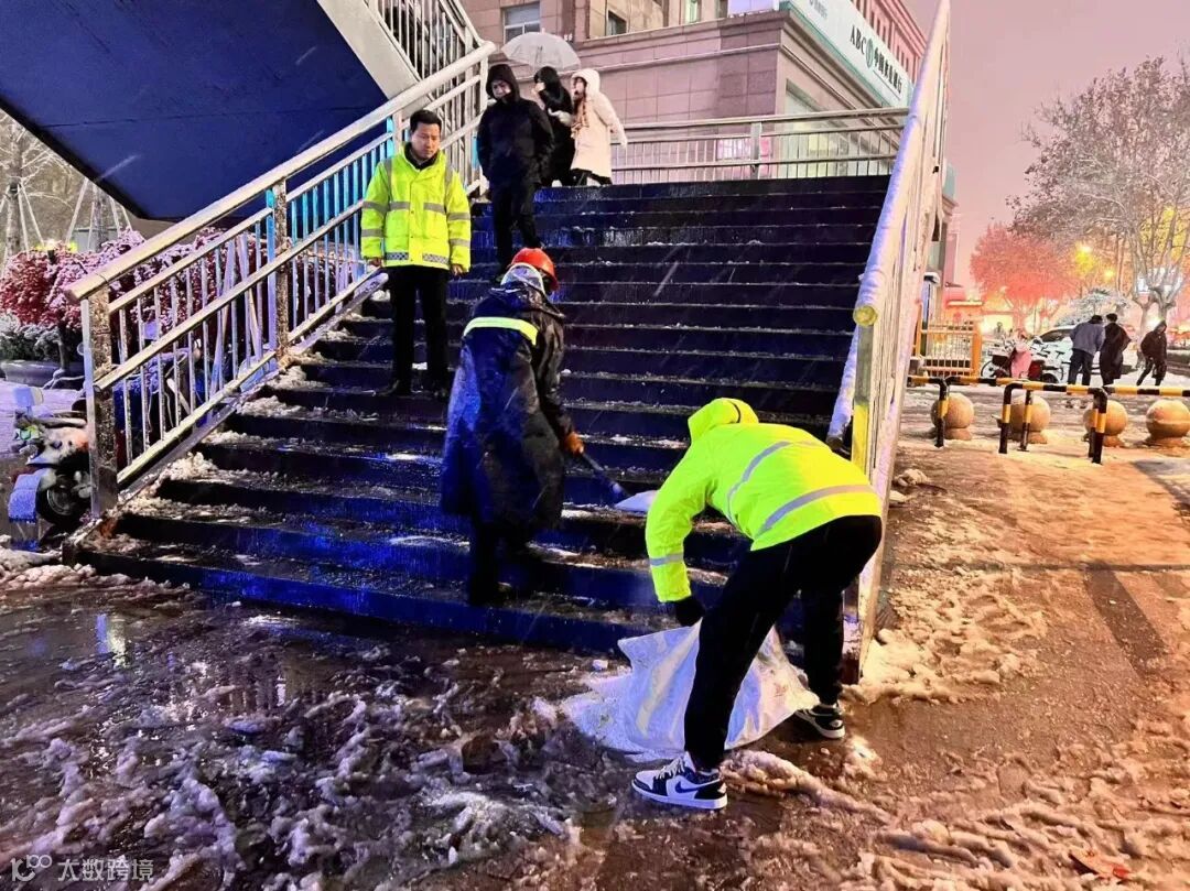 12月14日下午的强降雪导致花园路洪楼银座过街天桥桥面积雪严重,存在较大的安全隐患。第一项目部得知情况后立刻开展应急措施,在雪势微缓后组织应急人员对天桥路面进行积雪清除,抛撒除雪剂,保障路面畅通,过往行人安全。项目应急管理人员,执行24小时严防死守制度,做好清雪除冰工作,力求最大程度消除冰雪影响,保障居民安全通行。