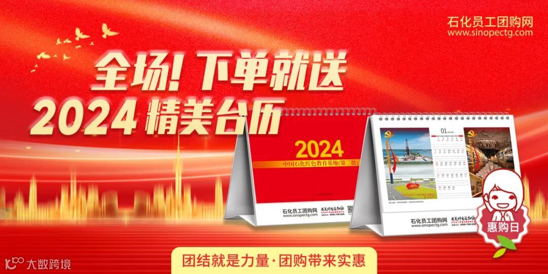 2023年11月17日中午12:00起,凡是在石化员工团购网下单,全场商品参与,每单赠送一本2024年《中国石化红色教育基地(第三批)》台历!包邮到家!