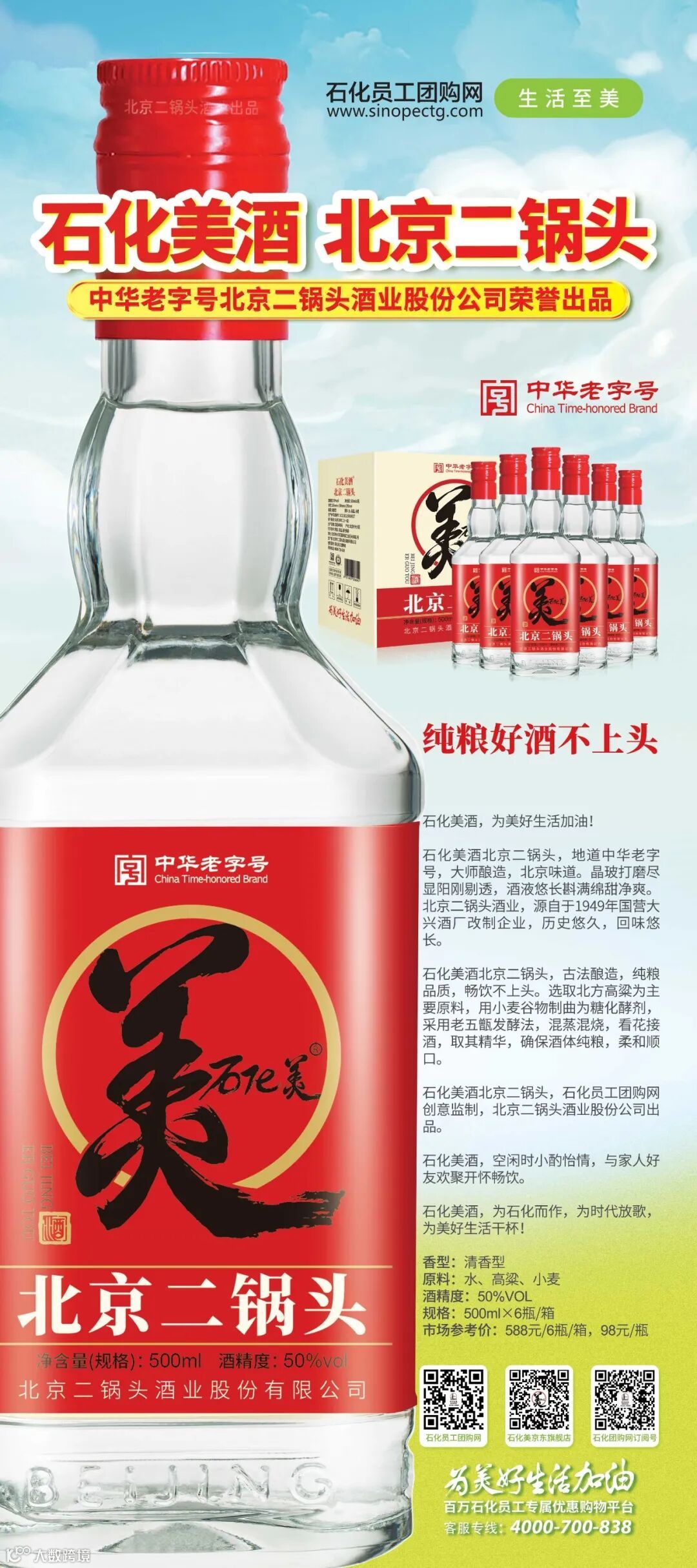 石化美北京二锅头,地道中华老字号,古法酿造,北京味道,纯粮好酒不上头。