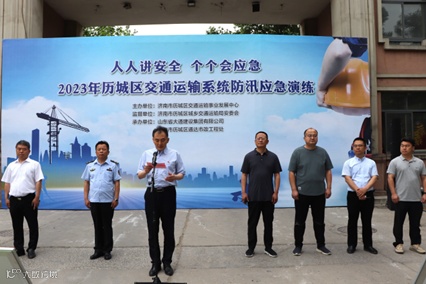 5月20日上午,由历城区城乡交通运输局主办,山东省大通建设集团、通达市政工程处承办的2023年防汛抢险应急演练正式拉开序幕,区城乡交通运输局党组书记、局长贾武担任总指挥,集团副总经理王庆国担任指挥部成员,公司总经理李振任设备保障组组长。
