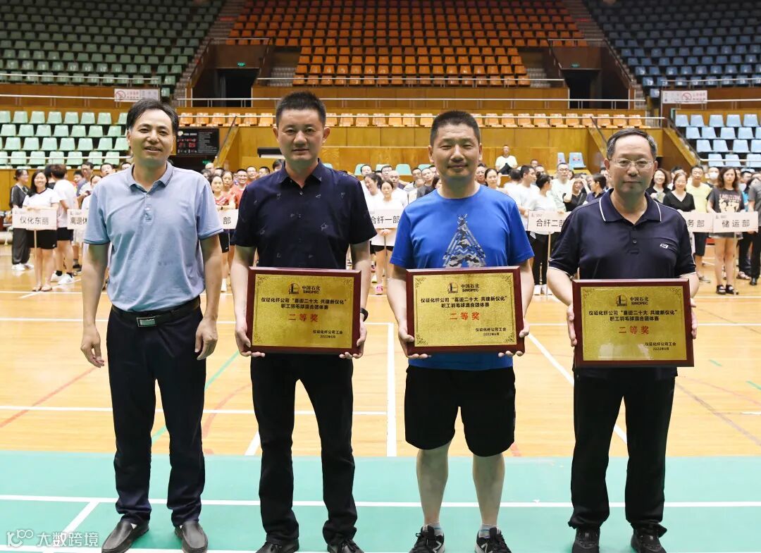 6月26日晚,中国石化仪征化纤公司“喜迎二十大 、共建‘新仪化’”职工羽毛球混合团体赛冠亚军决赛在仪化体育馆举行。公司副总经理毛绪国,公司工会、各参赛单位有关负责人在现场观看了比赛并为获奖单位颁奖。