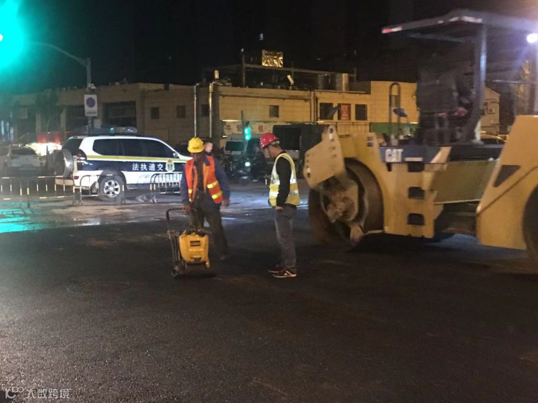 祝甸路位于历城区、长度680米,规划红线宽度为30米,为城市支路;两侧有东方花园、保利海德公馆、祝甸村等住宅区,为了不影响周围市民出行,2018年10月28日22:00至2018年10月29日06:00;2018年10月29日22:00至2018年10月29日06:00,对祝甸路快车道进行全封闭施工,进行面层沥青摊铺工作。10月28、29日两夜快车道摊铺沥青混凝土22000平米;彩色沥青摊铺7500平米。