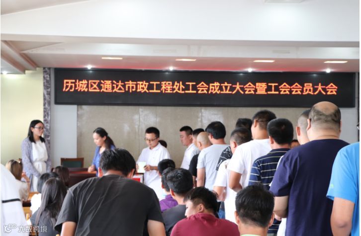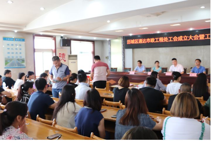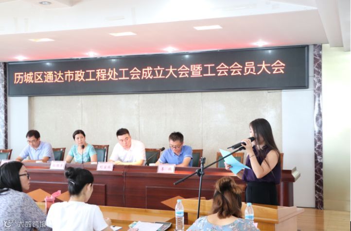 2018年7月12日,济南市历城区通达工程处工会成立大会暨工会会员大会在历城区城乡交通运输局六楼会议室召开,交通局工会总主席孙胜萍、通达工程处总经理刘宝振、副总经理李振、总工程师吴京堂出席了会议。