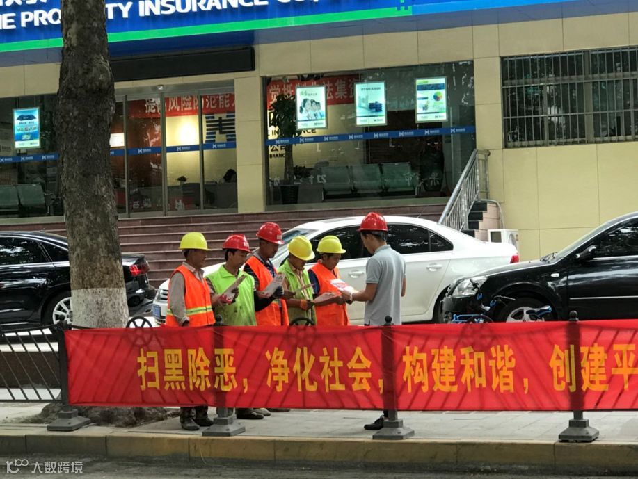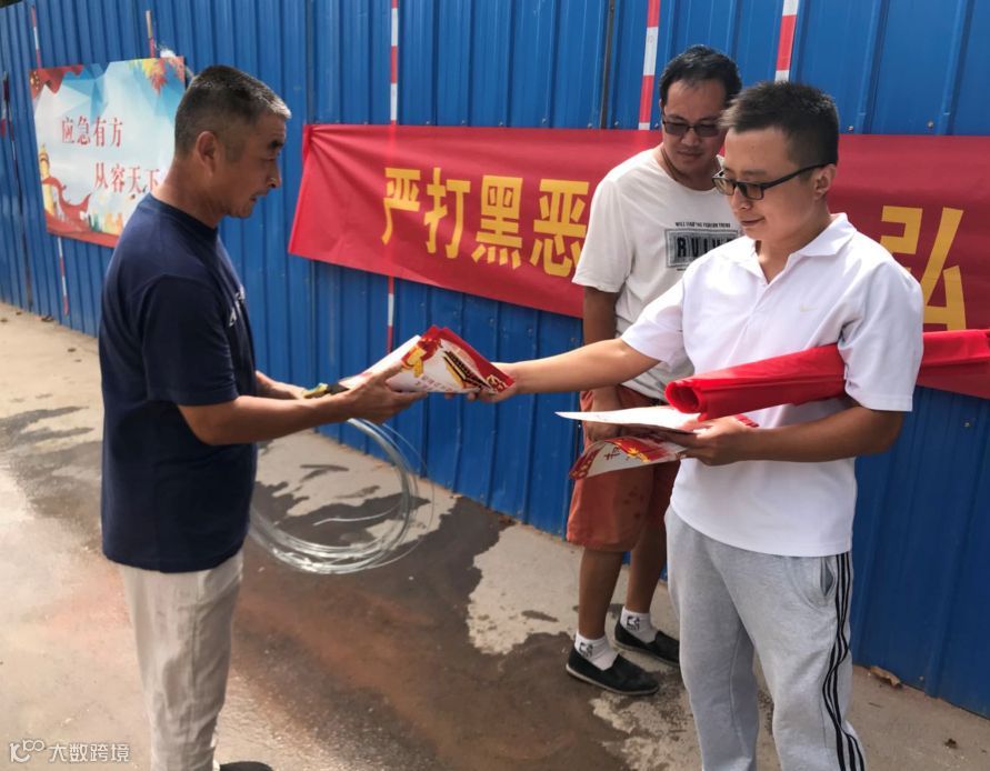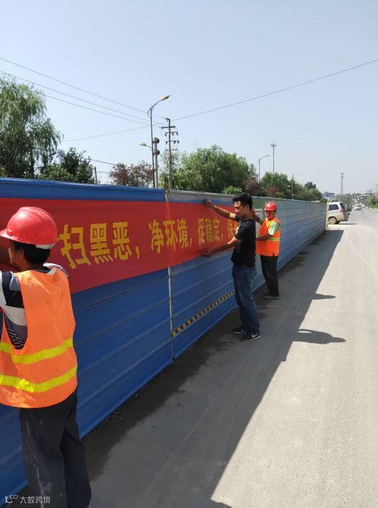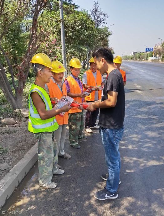 为了强化宣传工作力度,在施工现场主要路口、道路两侧,悬挂公益广告牌匾、拉横幅的基础上,在施工现场发放宣传单给施工工人及路上行人,并讲解扫黑除恶专项斗争的目标、意义,鼓励广大群众积极踊跃揭发检举黑恶势力。