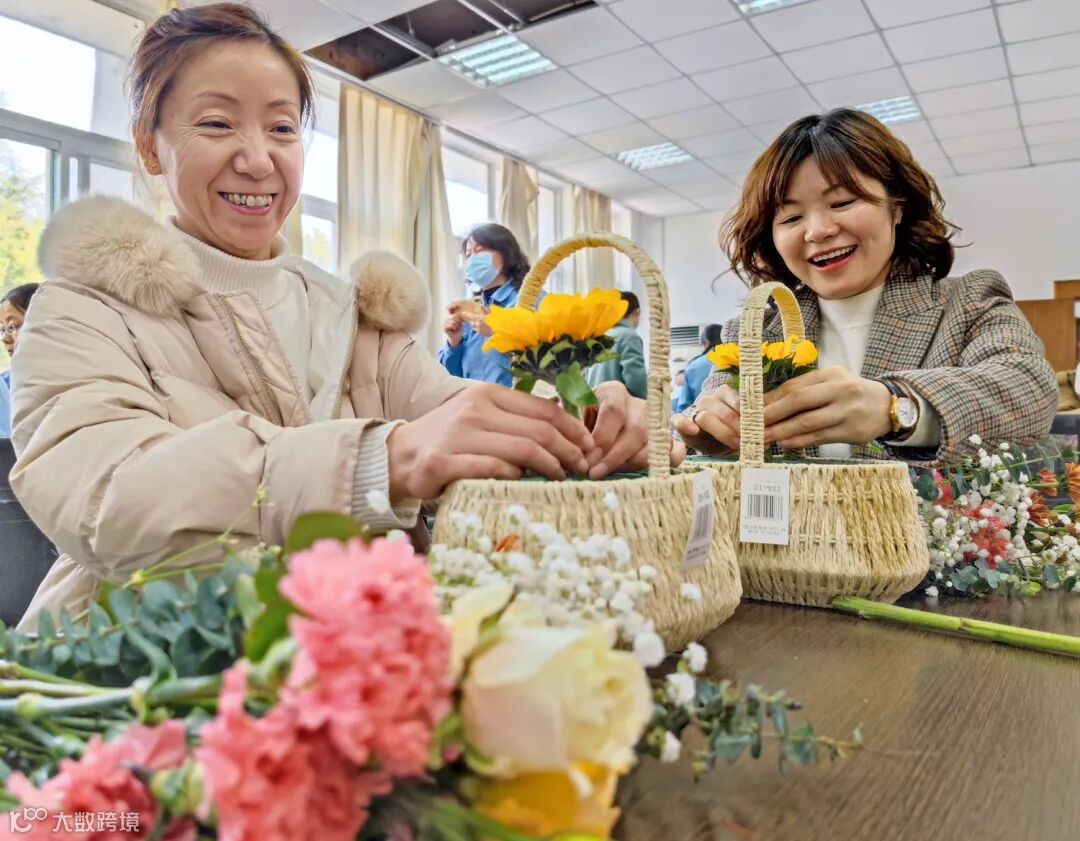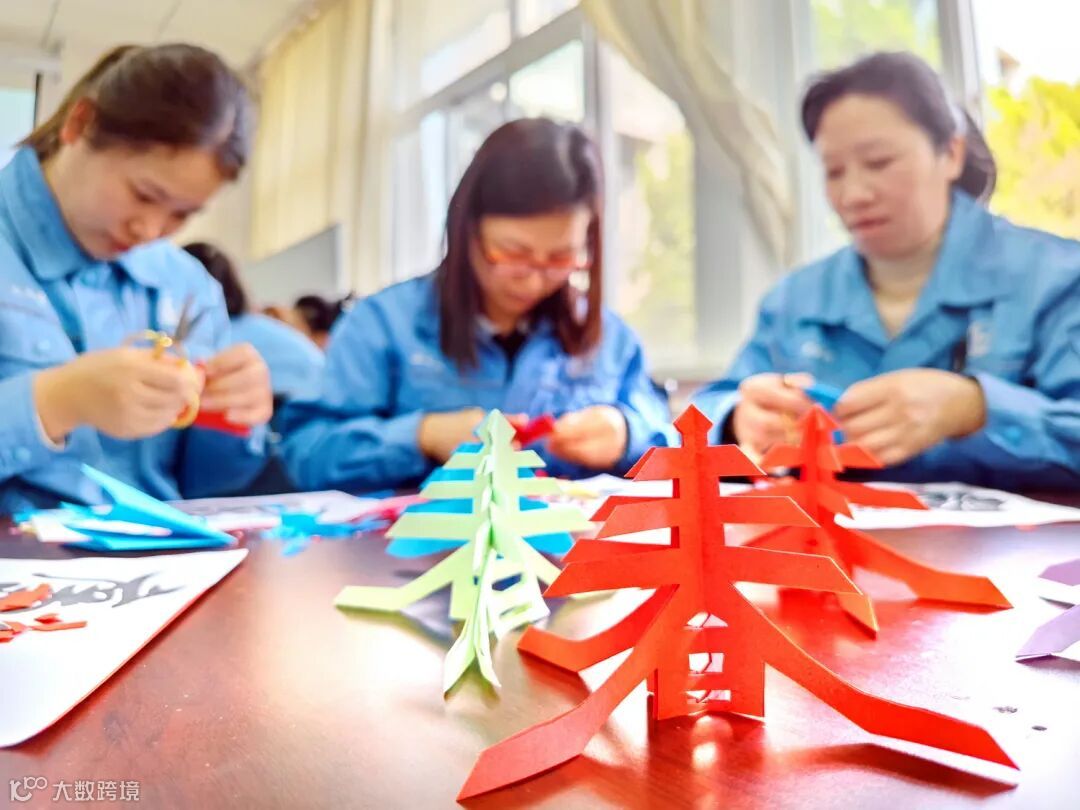 活动中,来自生产一线的50多名女职工在专业剪纸和花艺老师的讲解和指引下,大家精心选材、设计造型、搭配颜色。