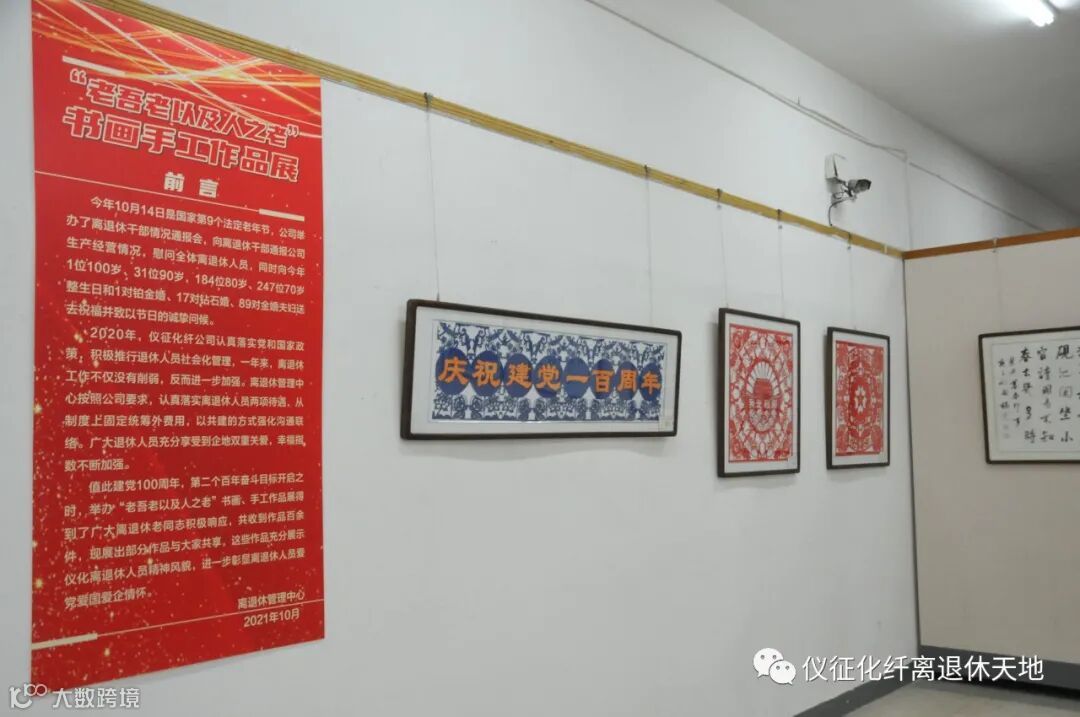 由中国石化仪征化纤公司离退休管理中心和仪征老年大学仪化校区主办的“老吾老以及人之老”书画手工作品展,10月27日下午在文化宫展厅开展。公司党委副书记、纪委书记、工会主席陈达为展览揭幕。
