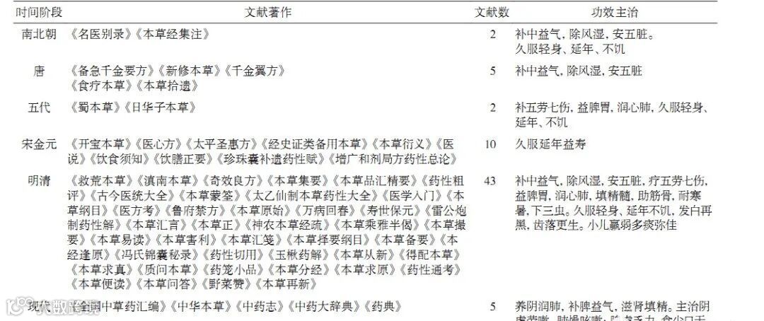 摘自《中华中医药杂志》2021年5月第36卷第5期《黄精性味归经及功效应用的古今演变》