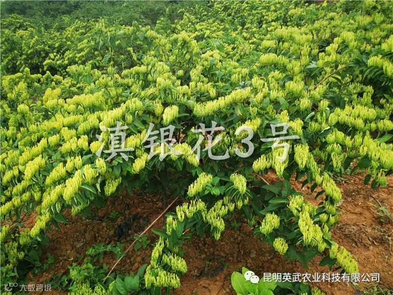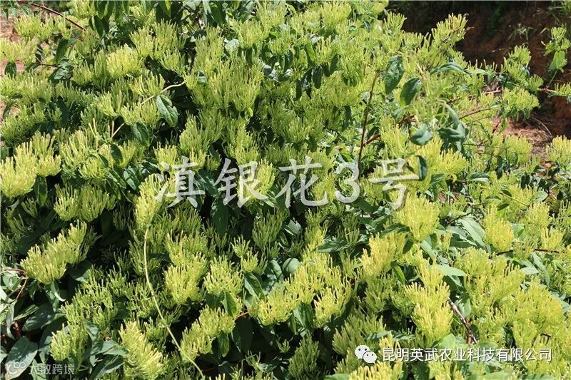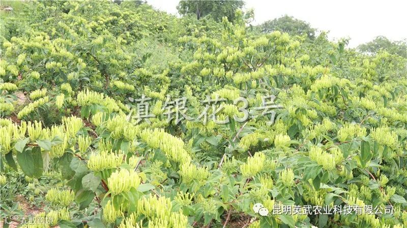 “滇银花3号” 新品良种,药效符合《中国药典》要求,具有开花集中,采摘方便节省人工的特点,亩产量可达200公斤干花以上,颇受种植户好评。一些商家用传统品种金银花对外进行虚假宣传,宣传他们的金银花苗亩产能达到干花300~500公斤,还有人宣称金银花种植第一年金银花亩产量可达200公斤干花。了解金银花的行业人士都知道这纯粹是炒作,根据我国金银花种植的现有品种特点,达到这一数字很不现实。正常金银花苗三年时间才能进入盛花期,因此听到这种不负责的吹嘘您更应该谨慎。即使“滇银花3号”这样精心改良培育出来的品种,第一年种植也是培育树形为主,会开花但不提倡采花,第二年可采花,三年以后进入盛花期,方能获得持续效益。所以离开品种谈产量是盲目的。