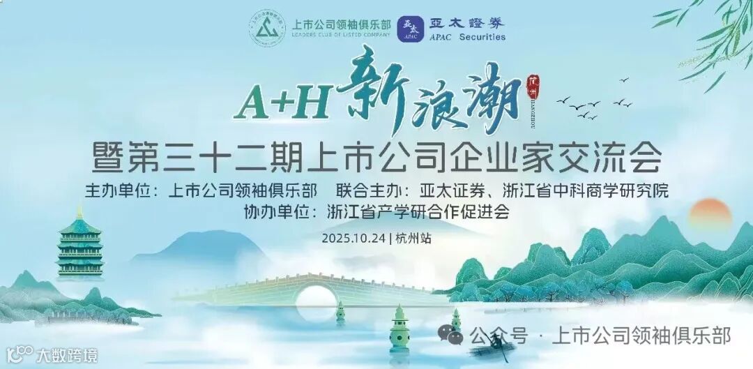 2025年10月24日,由上市公司领袖俱乐部主办,亚太证券、浙江省中科商学研究院联合主办,浙江省产学研合作促进会协办的"杭州第三十二期上市公司企业家交流会"在杭州隆重举行。