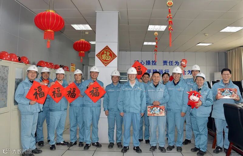 在中控室,万涛一行手拿福字,捧着福牛,与职工合影留念,互致新年的美好祝愿,现场洋溢着温馨的喜庆气氛。
