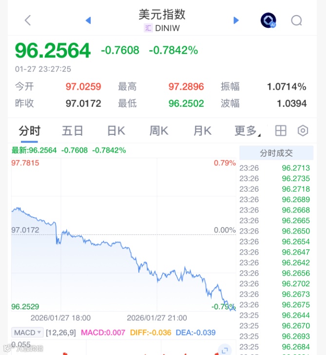 截至纽约汇市尾市,美元指数下跌0.84%,报96.219。