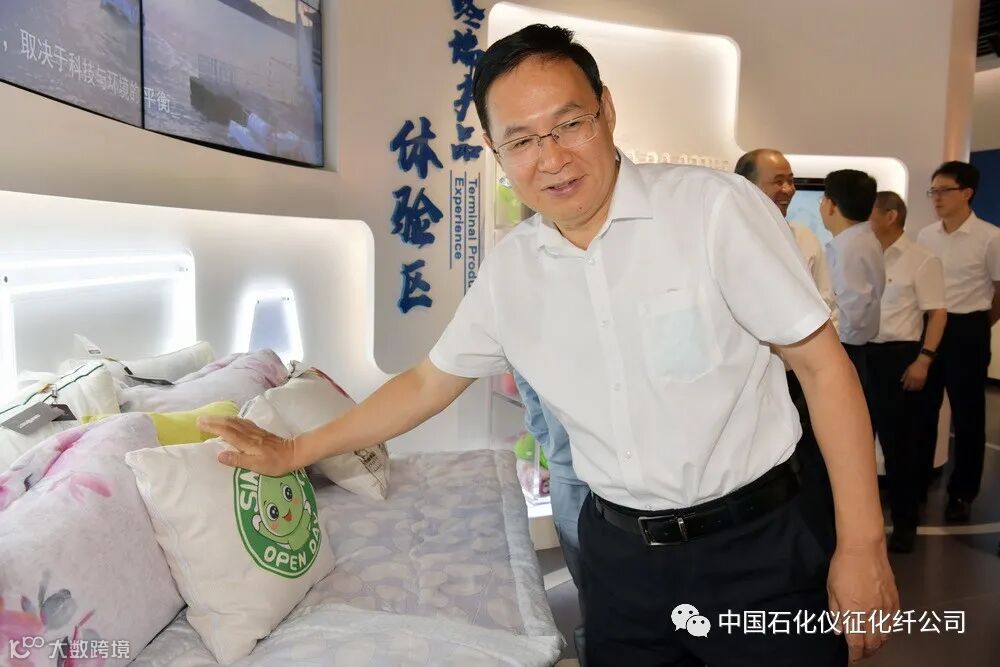 在PBT业务实物样品前,万涛向张玉卓汇报了仪化柔性化生产线生产PBST、PBAT生物可降解新材料的情况,张玉卓详细询问相关情况,说:“只要是国家需要,方向看准了就去做。” 在听取仪化两家合资公司业务情况汇报后,张玉卓说:“贸易战后对纺织品、服装市场会产生影响。”万涛说:“我们也看到了这个趋势,服装用需求在减少,快销品、水刺无纺布等需求在增加,我们正在积极调整产品结构。”