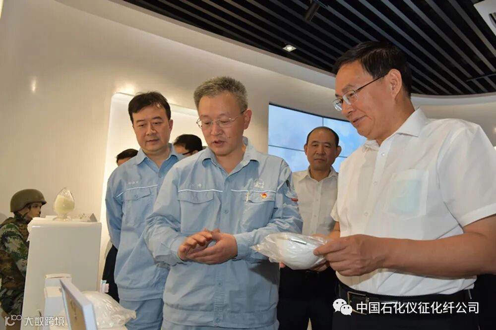 在特种纤维业务实物样品前,万涛汇报了仪征化纤超高分子量聚乙烯纤维、对位芳纶纤维开发打破国外垄断解决“卡脖子”问题及产品开发应用情况,并汇报了国家改革开放40周年成就展上中国石化两张图片入选,其中一张就是仪化力纶的图片,反映了仪化从解决身上穿的纤维发展到高等级特种纤维的巨大变化等情况,张玉卓听后说:“很有意义。”