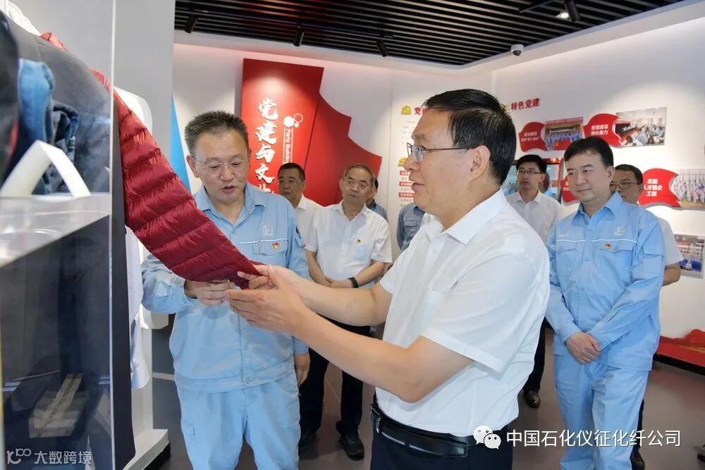 在听取党建工作情况汇报时,张玉卓详细询问公司在岗员工党员和离退休党员人数等情况。在公司终端产品展示区,张玉卓一边听汇报、一边亲手感受、体验原生中空被芯、仪纶服装、防寒服、防切割手套、冰凉垫、防弹衣、防弹头盔、PBT牙刷、熔喷布口罩等终端产品,并不时询问性能、特点。当看到熔喷布口罩旁有一块香港工联会职业发展服务处对仪征化纤捐赠5吨高标准熔喷布支持境外抗疫的感谢状时,特别关心了解仪征化纤目前熔喷布装置生产运行情况。