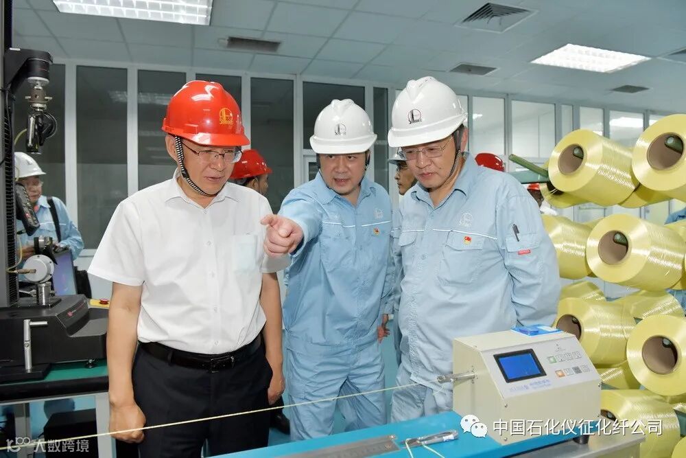 在高纤部装置现场,张玉卓一行先后察看了千吨级对位芳纶工业化示范装置、千吨级超高分子量聚乙烯纤维生产装置,详细了解生产工艺技术、特点、高纤湿法干法纺差异、竞争优势、军民应用领域、国内外产能布局以及目前生产经营等情况,驻足观看产品强力测试、产品应用领域展板等。公司高纤部负责人汇报了港珠澳大桥收官之战接头安装发挥作用的吊带是由仪化14万根超高分子量聚乙烯纤维组成的。张玉卓听后说:“看了感觉很新鲜。”