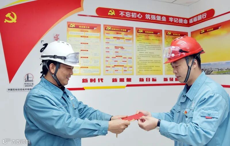 1月28日,中国石化仪征化纤公司BDO部生产运行党支部书记张威向支部党员鲁信君送上一张红色的政治生日卡,祝贺他入党25周年,鲁信君深情表示:感谢组织关心,一定努力工作、牢记党员使命。