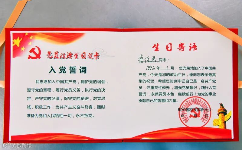 今年是中国共产党建党一百周年,向每一位入党周年纪念日的党员送上一张“政治生日卡”,是BDO部党总支在2021年开展的又一项党建新举措,旨在通过一张承载着党员初心和使命的小卡片,送上组织的关心,送上组织的期望。