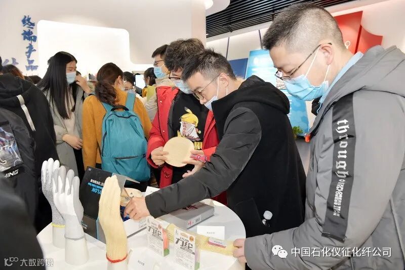 由于工作的特殊性,他们对仪征化纤公司陈列厅里的绿色终端产品产生了极其浓厚的兴趣。每件展示样品都去感受了一遍,尤其有不少小姐姐,对现场的化妆刷爱不释手,还主动添加讲解员的微信,希望购买仪化的棉柔巾。