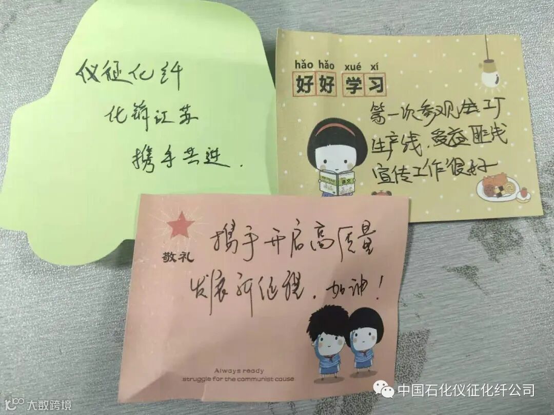 短暂的参观很快结束了,小哥哥、小姐姐们纷纷留言,写下对仪征化纤的祝福,写下了这次参观最真实的感受,希望仪征化纤与化销江苏携手,共创美好明天!