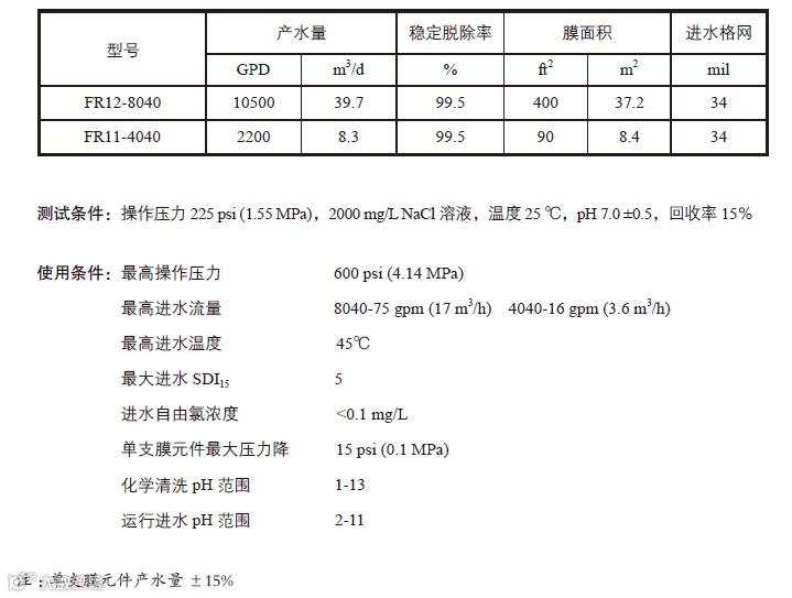 时代沃顿FR系列抗污染反渗透膜元件采用特殊制膜工艺改善了膜表面亲水性,电荷性及粗糙度,从而减小了污染物及微生物在膜表面的滋生与吸附,广泛应用于印染厂废水处理系统,具有稳定的性能表现。