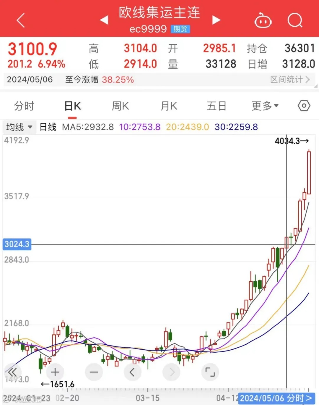 5月涨近40%!集运指数(欧线)期货还能涨吗?