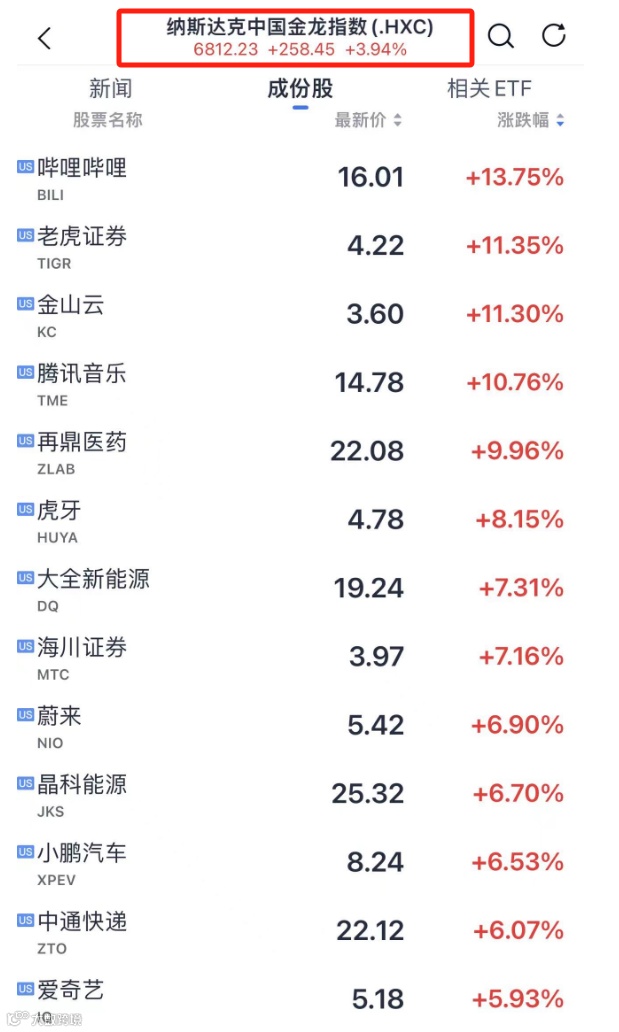 此外,中概股也迎来爆发,纳斯达克中国金龙指数涨近4%。