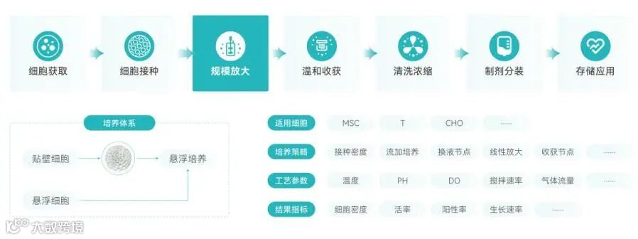 规模化:微载体三维培养技术,能够单批制备百人份级别的细胞。