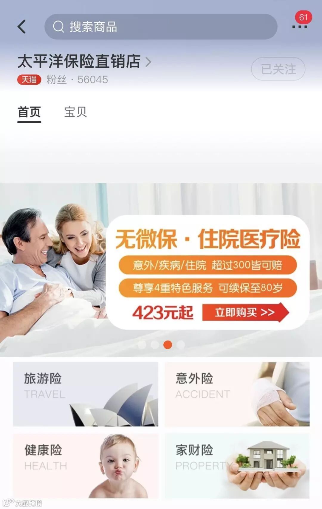 太平洋保险天猫旗舰店(淘宝搜索“太平洋保险直销店”,店里寻找“太孝心”哦)。