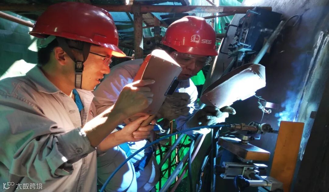 公司大力实施“人才强企工程”,为青年员工搭建成长舞台。图为公司年轻员工在海外项目和外籍员工一起工作。