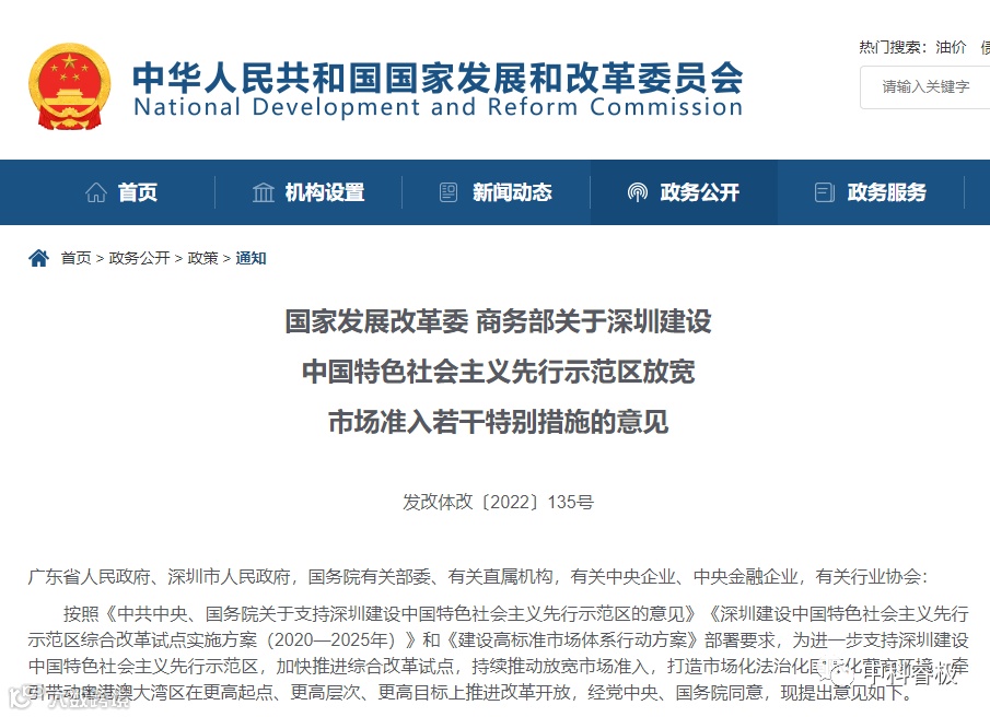 据发改委网站1月26日消息,国家发展改革委、商务部联合发布《关于深圳建设中国特色社会主义先行示范区放宽市场准入若干特别措施的意见》,其中包含六大领域、24条特别措施,支持深圳大胆闯、大胆试。意见提出创新医药健康领域市场准入机制。支持干细胞治疗、免疫治疗、基因治疗等新型医疗产品、技术研发。