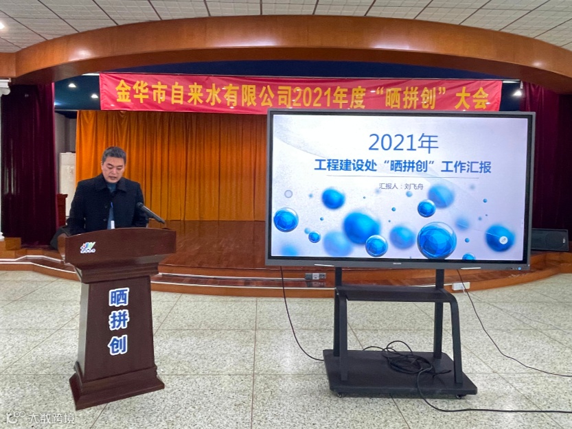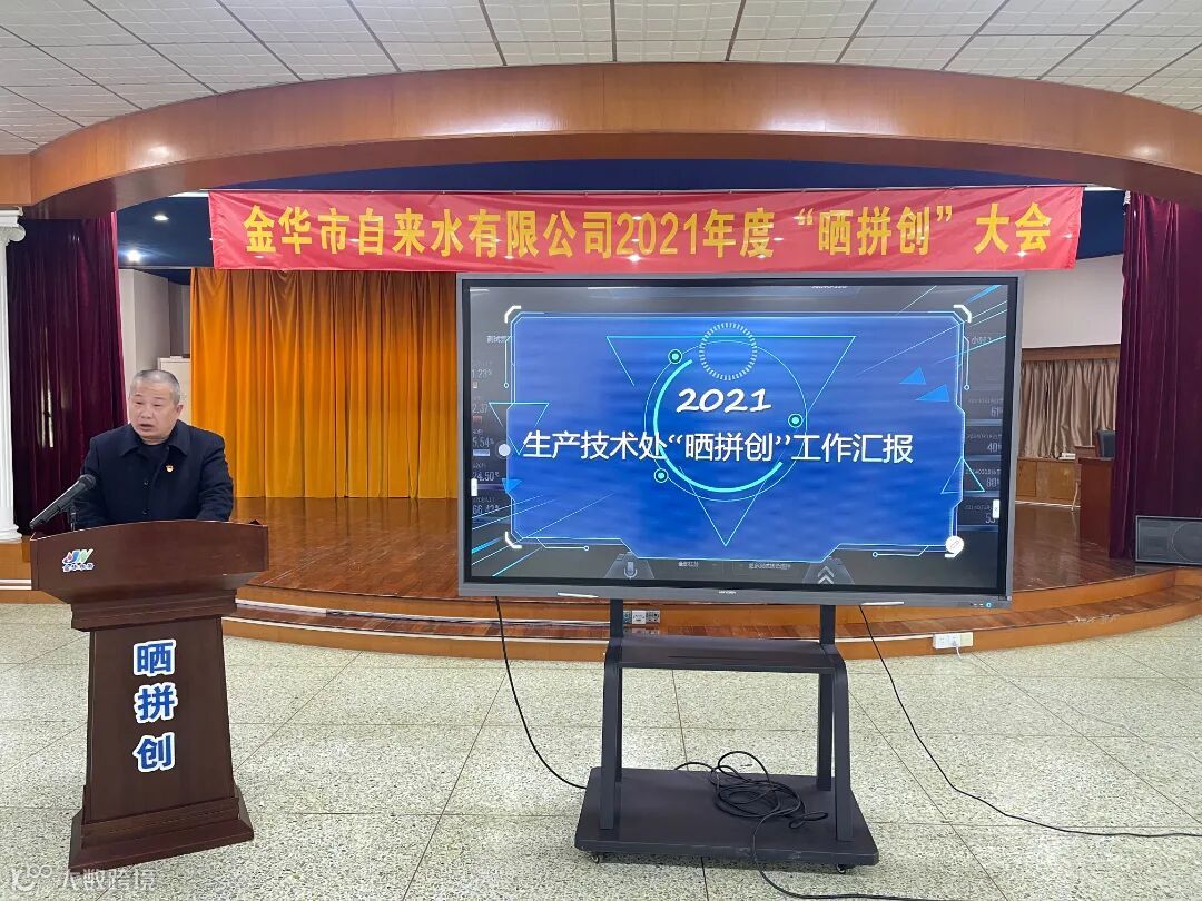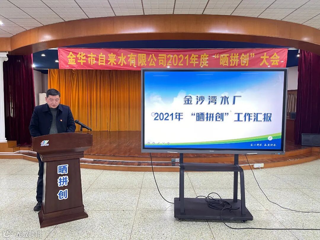 2021年1月12日下午,金华市自来水有限公司召开了2021年度重点工作“晒拼创”大会。通过工作晒拼的方式,对各部门(单位)推进重点项目工作状况、工作成绩和特色工作“晒一晒进度、比一比水平、拼一拼实绩”,进一步传导压力、催生动力、激发活力,营造互看、互学、互比的浓厚氛围。公司党政班子领导、公司中层管理人员、党员代表及公司职工代表参加活动。