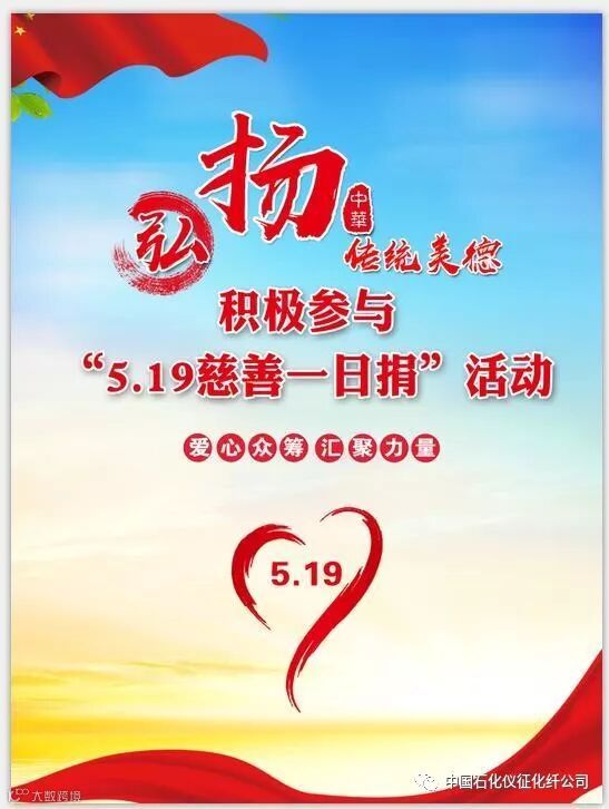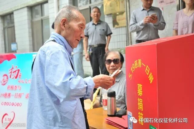 今年5月19日是仪征市第十六个“5.19慈善一日捐”活动日,今年活动的主题是“心中常存善和爱,踊跃参加一日捐”。仪化公司离退休管理中心、仪化志愿者协会发出倡议,号召公司干部职工和居民群众继续献爱心、伸援手,慷慨解囊,踊跃捐款。