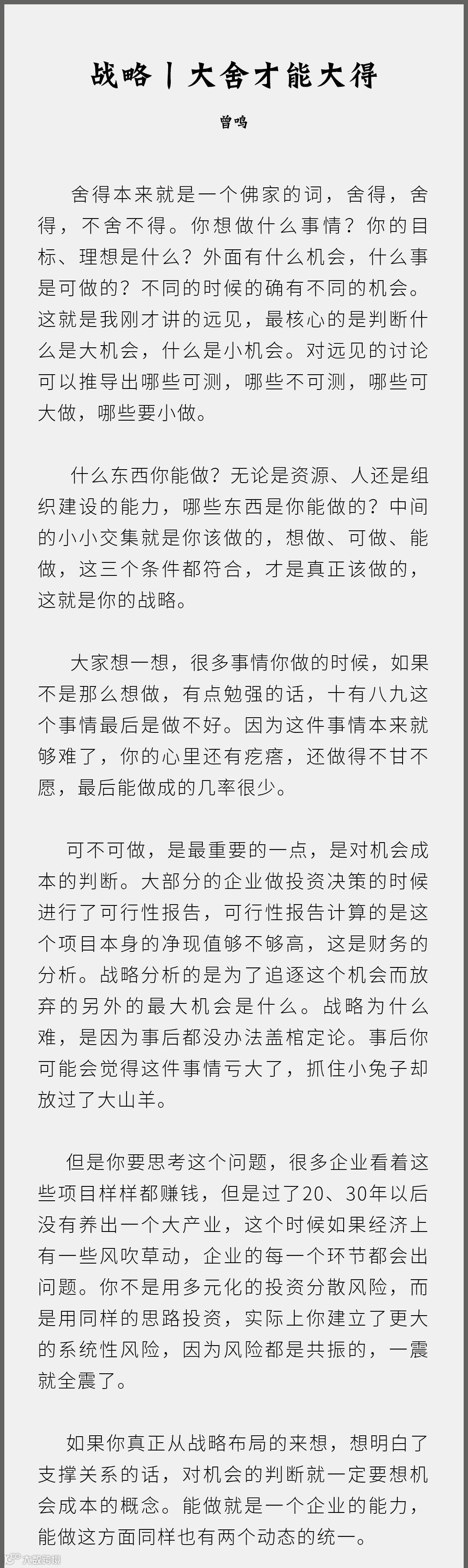 曾鸣:战略是大舍才能大得