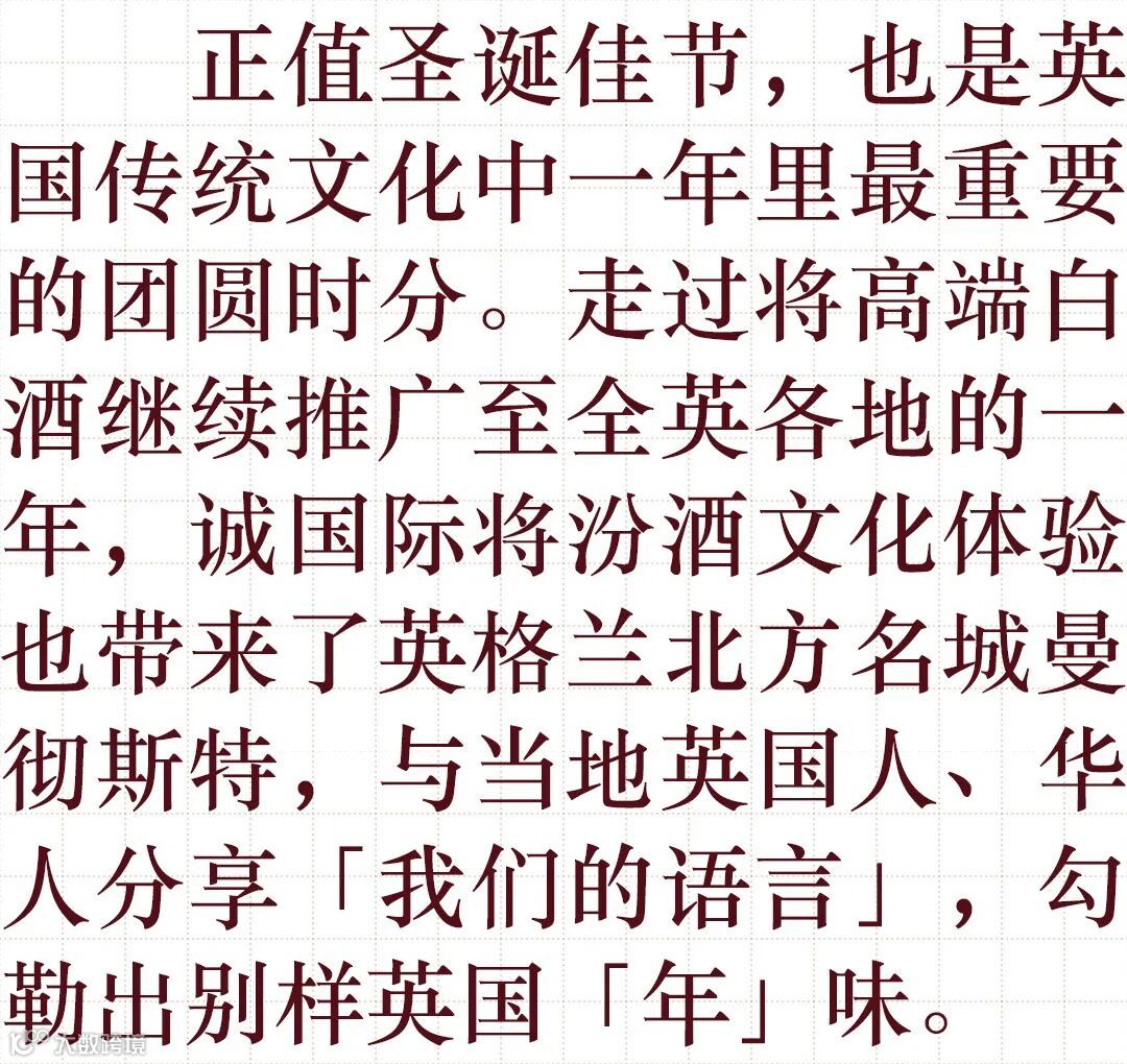 12月20日至21日,英国圣诞周正式拉开了序幕。诚国际贸易有限公司(以下简称「诚国际」)创意白酒文化推广的脚步来到了英国第二大城市——大曼彻斯特,与当地餐厅Sakura Japanese Restaurant合作,连续举办了两天的汾酒文化2021圣诞下午茶会。