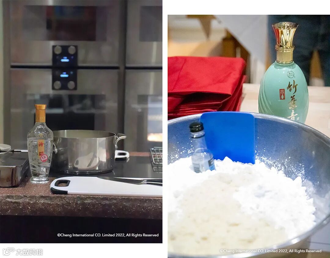 在「学员」们抵达前,Stefano和助手就已经以专业厨师的高标准,整洁有序地安排好了「教室」里的每一个角落,从随时可用的新鲜食材,到光洁如新的厨具……就连各款汾酒也都精神饱满,早早站在了它们将要入菜的位置▼