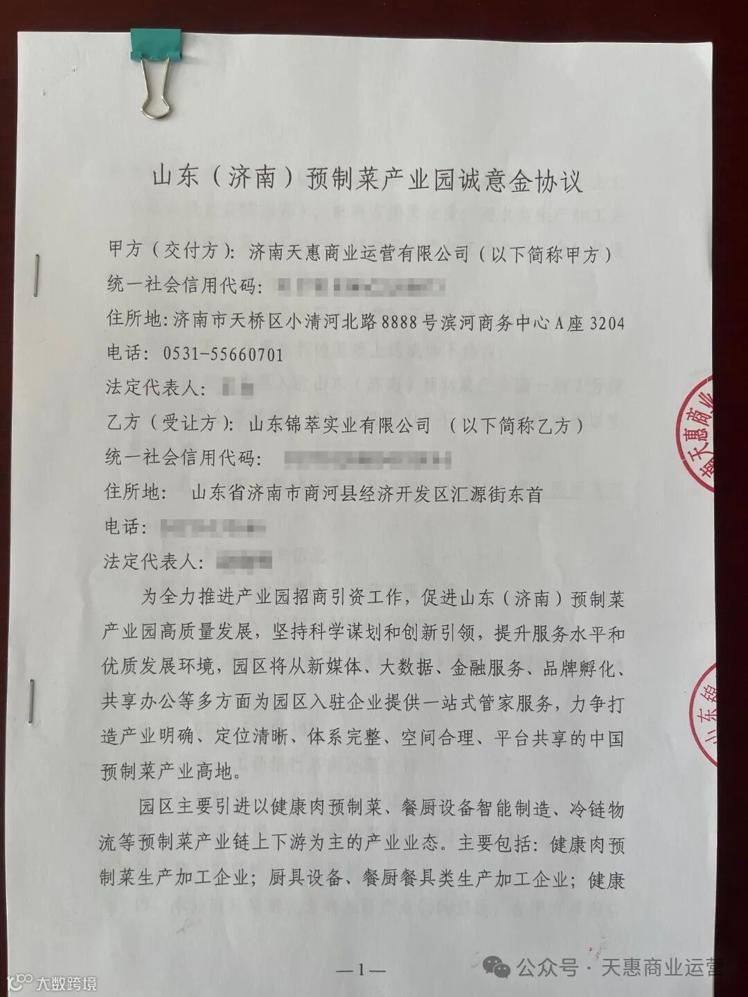 天惠商业运营有限公司签订入园意向协议,选定