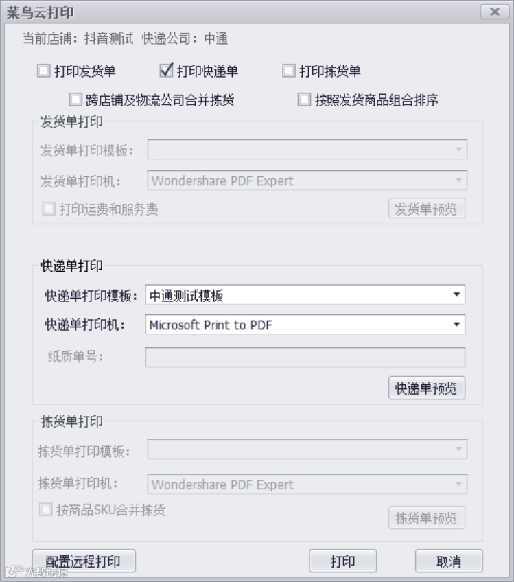 抖音电子面单打印