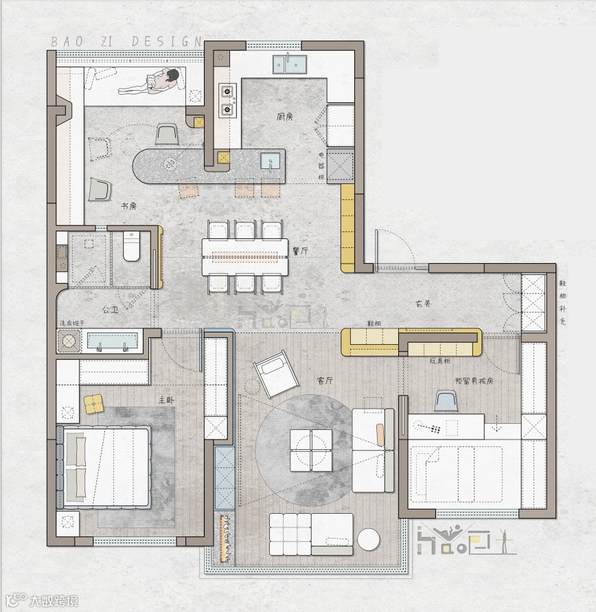 下面,我们看一下同一个户型,另外一位98年设计师包子(岑梓濠)的方案。
