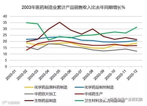 从细分产业结构和品类上来看,生物药品增速最快,化学制剂和中成药疫情期间受需求拉动,也受到一定积极影响。03年全年来看,医药工业生产随着SARS的大爆发而大幅增长,但是整个医药经济增长形势并非如此。由于产品的生产成本过高,药企的获益并非如销量一样增长,而受医院门诊总量减少,常规用药量呈下降趋势,相应带来药品生产企业常规药品生产销售下滑,且回款变慢,部分产品短期甚至出现积压的情况。