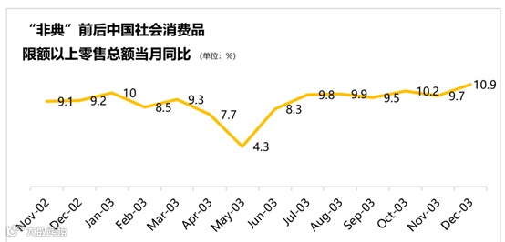 并且根据2003年的相关数据宏观来看,社会消费品在疫情期间确实有较大下跌,但疫情结束后明显回暖。