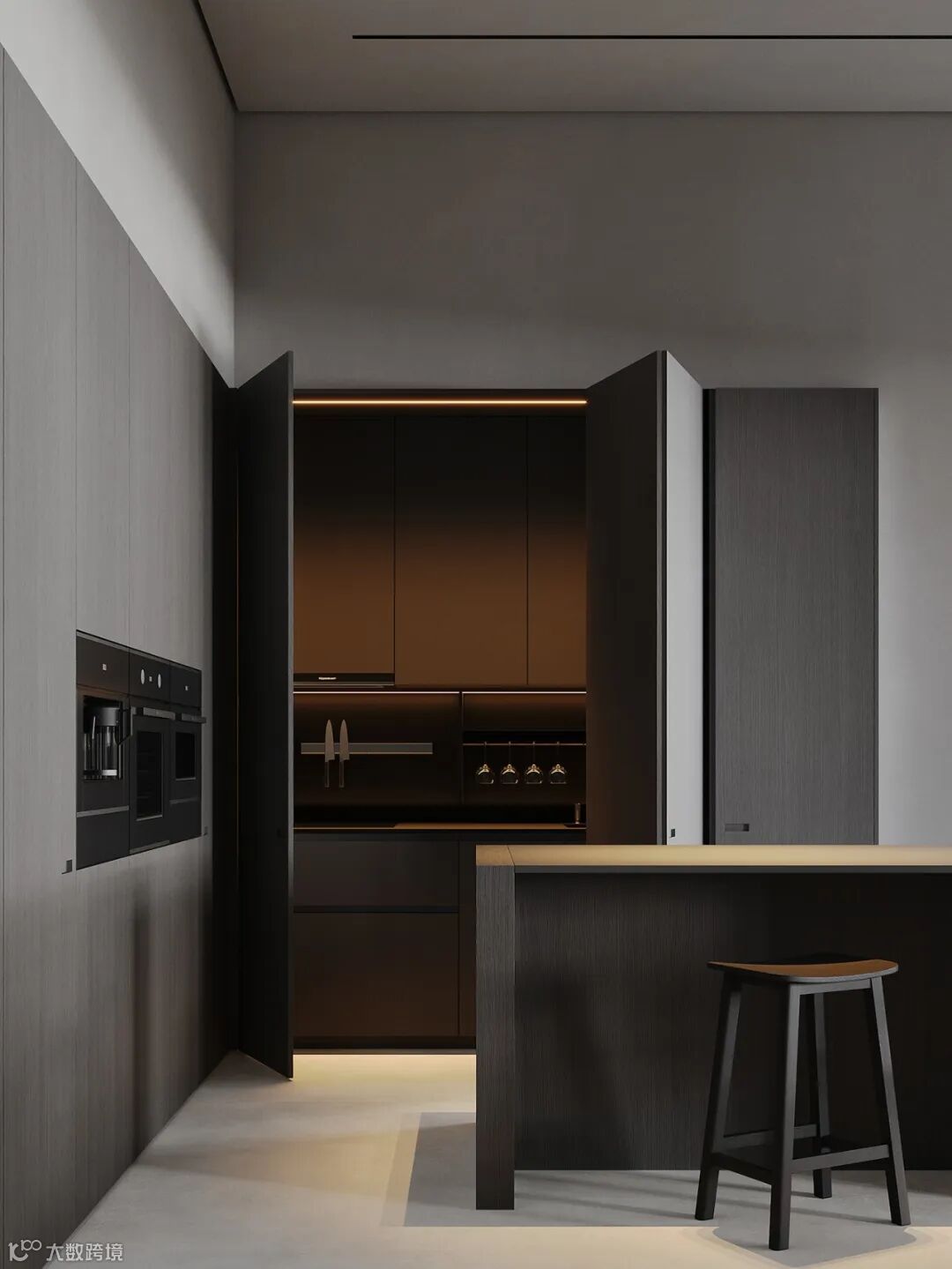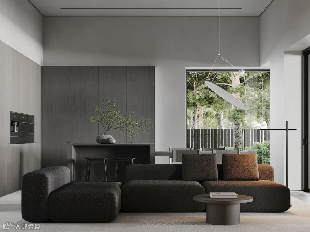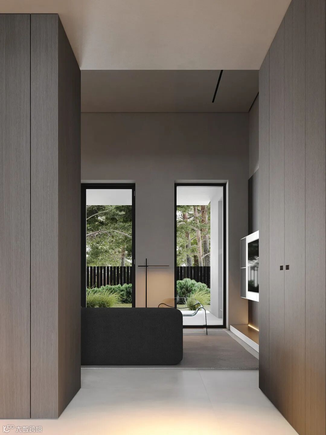 很难想象,这所房屋的设计出自一位女性设计师之手,深灰的色调,理性硬朗的线条,以及克制的材质运用,Elvira Poddubkova给客户打造了一处静谧而充满高级感的郊外度假屋。